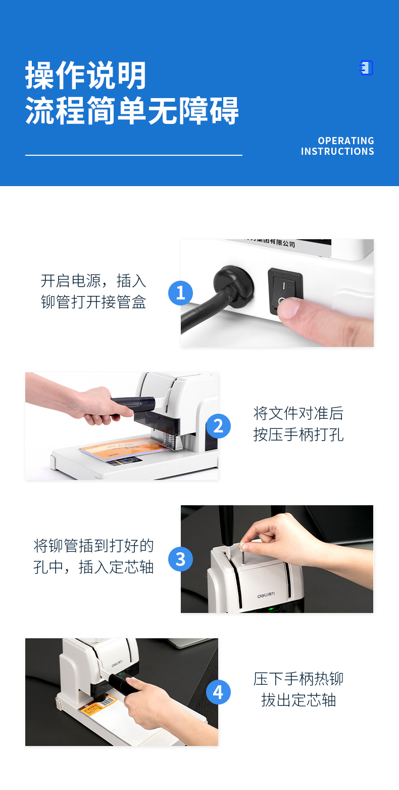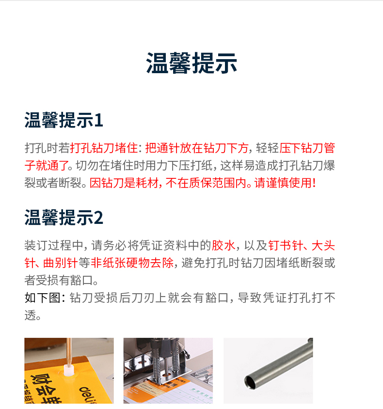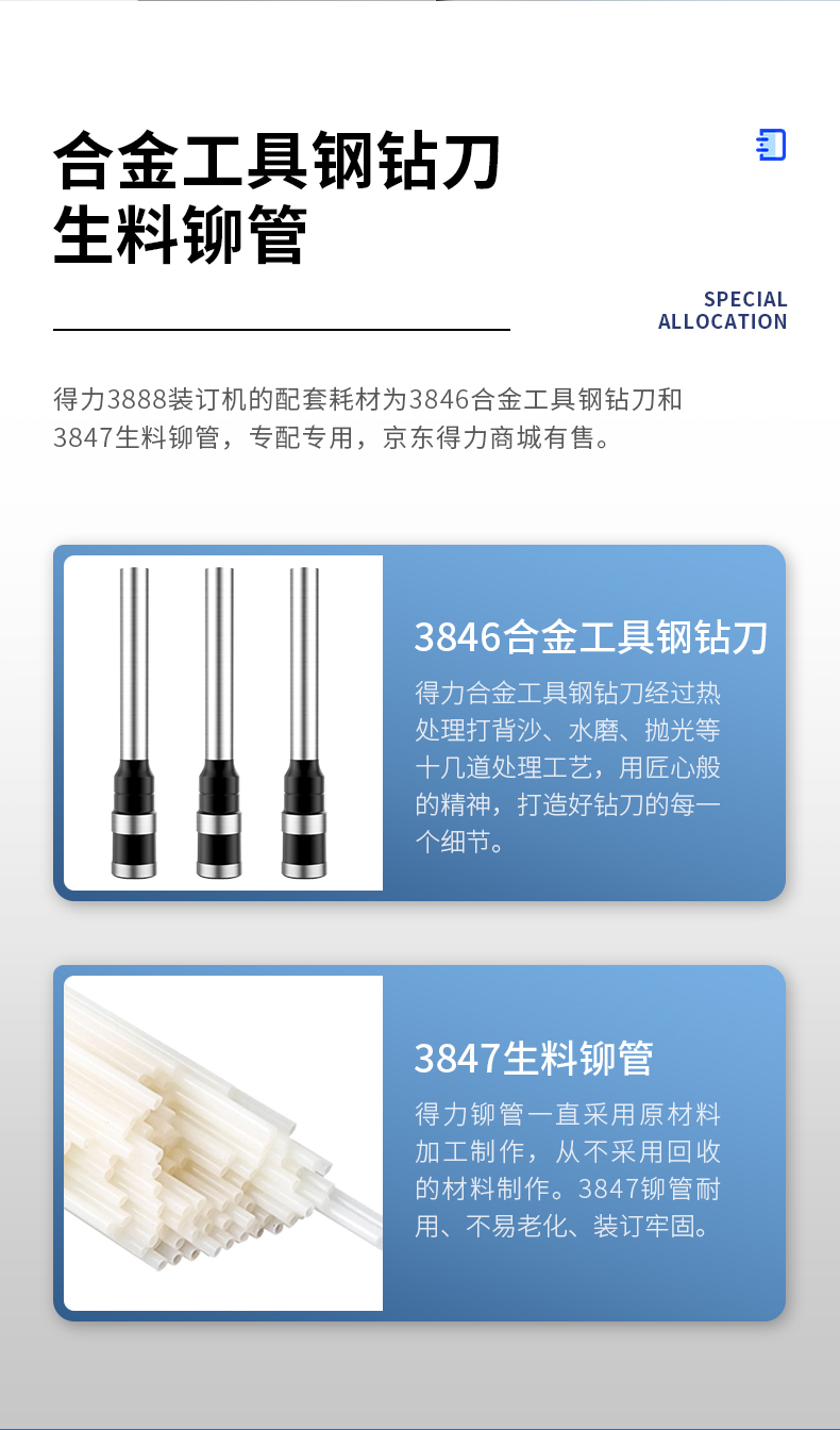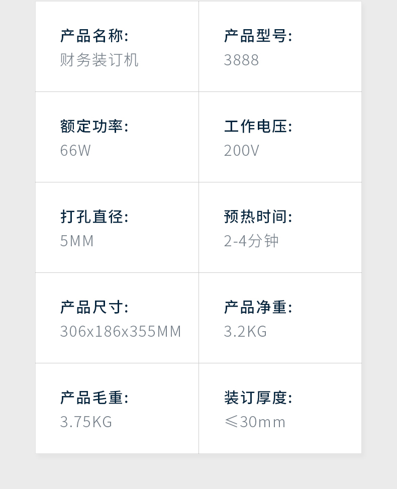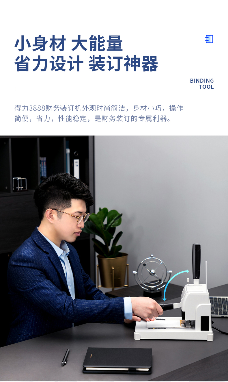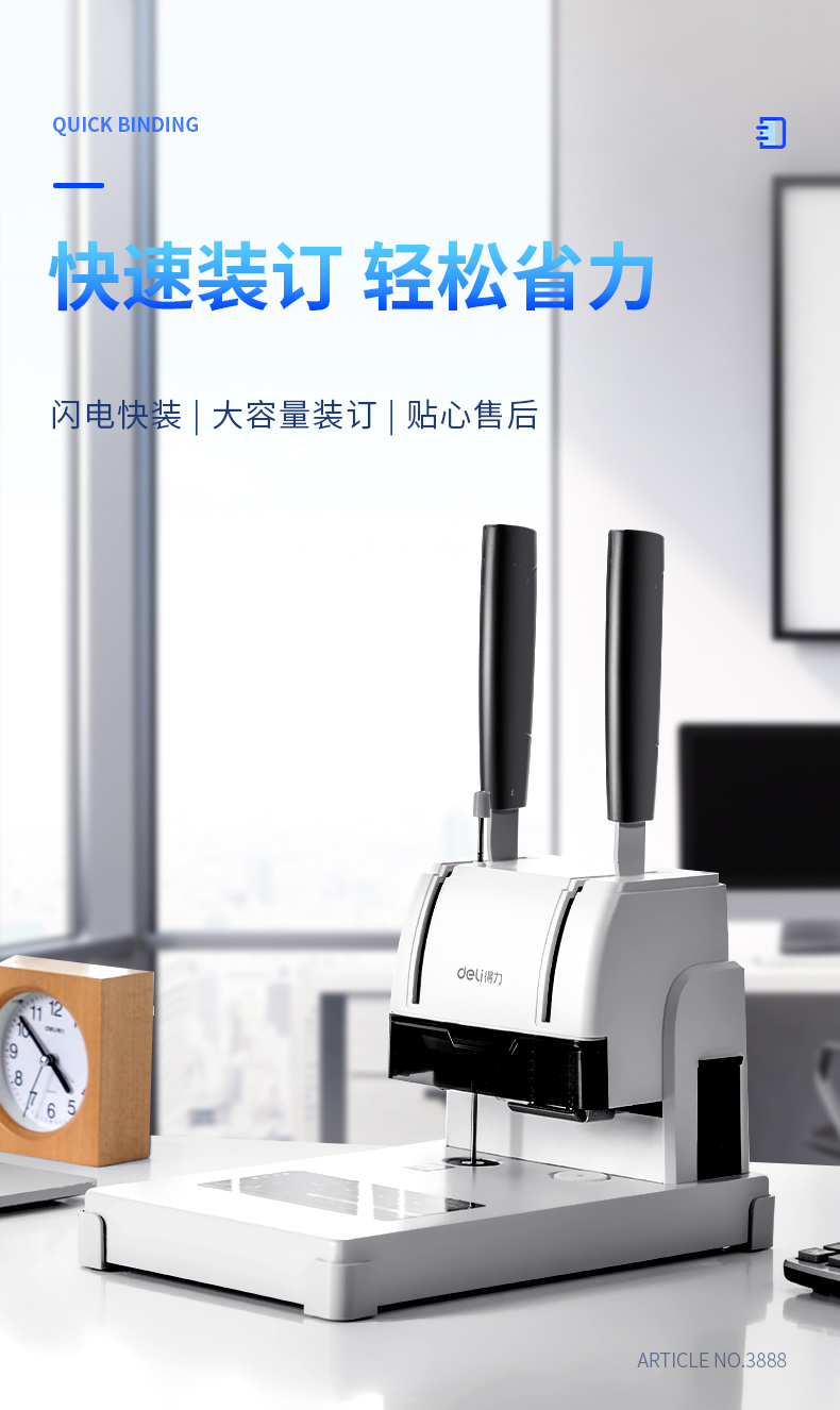 得力装订机 3888 财务凭证装订机 可装订30mm 300张纸(3846钻刀 3847铆管)